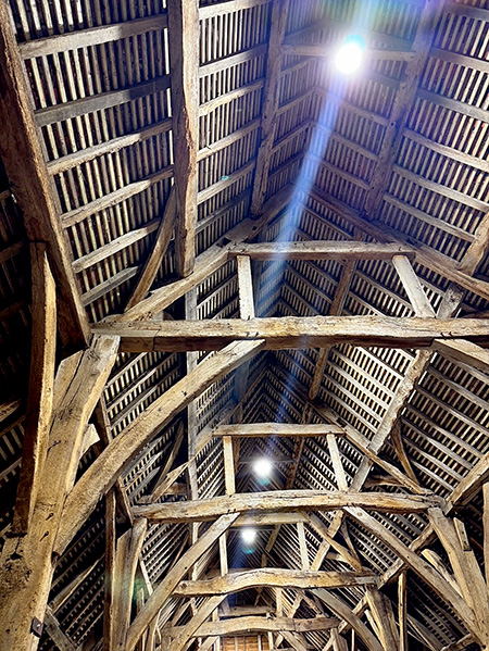 “Last rebuilt in 1438 . . .” It boggles the mind. I am awestruck by the beauty of this medieval barn. No doubt I would have spent the whole of the evening simply looking up. Congratulations and many thanks for your conservation and stewardship. Farming matters. Food matters. May this message be heard, considered, and incorporated as policy is decided.