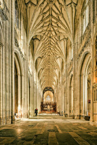 Winston Churchill once said: “ We shape our buildings; thereafter they shape us.” Many of the great cathedrals still extant today were created during what is often called the Age of Faith in the Middle Ages. The thirteenth and fourteenth centuries saw an explosion in the building of churches and cathedrals in order to help to ensure a place in Heaven. New techniques using pointed (gothic) arches allowed more space and light into the buildings compared to earlier circular constructions. The desire to bridge the transition between earth and heaven and the results can still be seen throughout Europe.