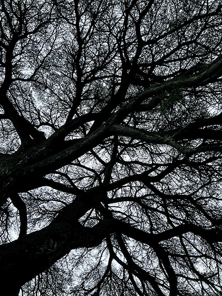 Due to the British climate, cedar trees grow rather well here, almost more so than in their native forests, spreading their branches above green lawns, majestic, large and really very high. There are consequences, though, to this enthusiastic growth: during the strong British wintery winds, their height and the massive branches full of evergreen needles mean that they can get whipped around making the limbs crack and break. In such weather they recall fearful lines: