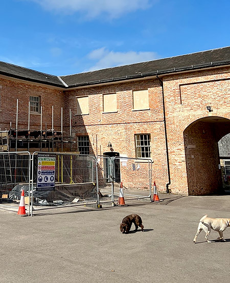 At the moment part of the courtyard behind the castle is fenced off to allow for some rather urgent building work to take place in one of the old garages. Originally used for carriages and then repurposed for motor cars by the 5th Earl, it suddenly became rather apparent that the minor cracks and sags of old age had developed into something more serious.