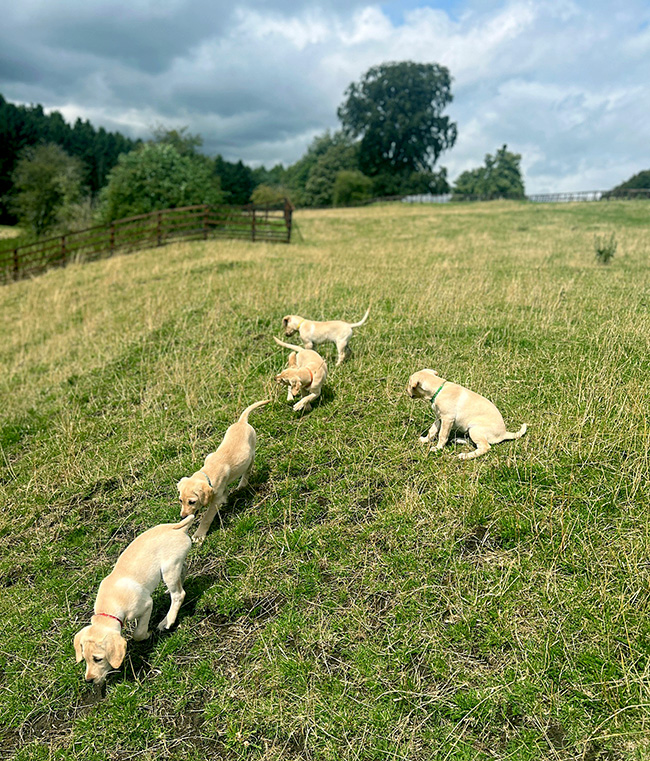 Naturally the puppies are popular with my family, with the team here and various friends with children of all ages, all of which helps get them used to different situations and different people. This will stand them in good stead when they go on to share other homes and lives. Even at this age, their innate recognition of emotions and feelings is far more sensitive than ours. They will turn their heads, looking and listening, aware of my body language.