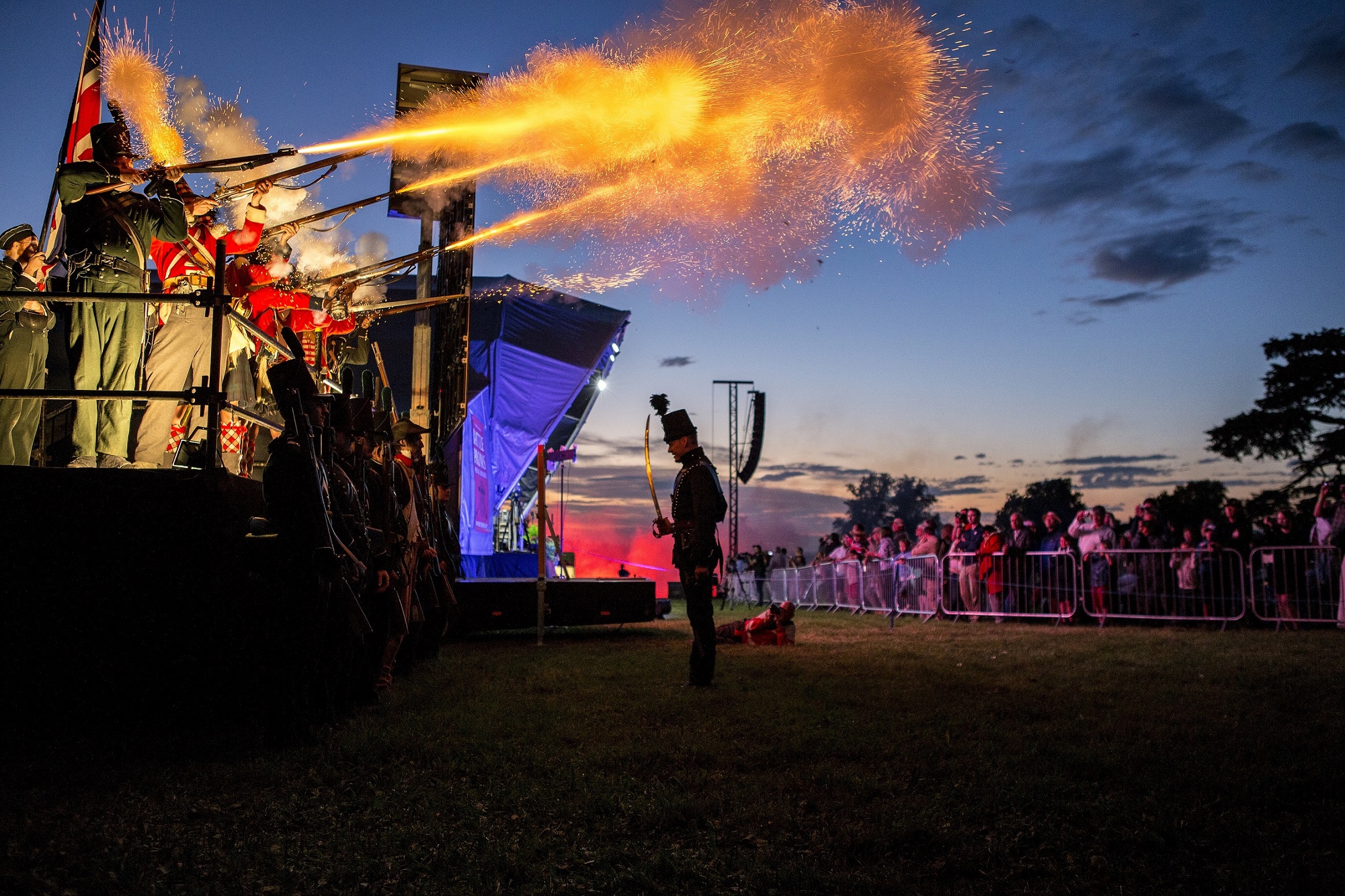 It is then a glorious mixture of old cavalry charge displays more reminiscent of the 19th century combined with singing which takes us back to the 1940’s. Early in the evening, a spitfire circles overhead, the elliptical wings so graceful, climbing, rolling and all of us stand in silence listening to the unique sound of the engine.