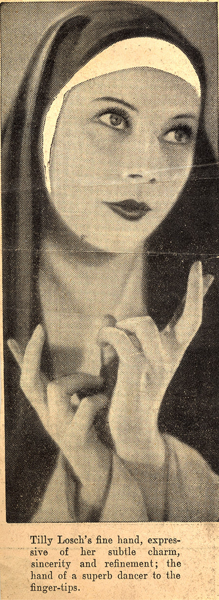 Tilly was actually Austrian, not American, and a Jew and like many others very fearful of the way the world was going. As a result, she was delighted to make England her home once more. Her career had started as a dancer in Vienna, before she became an actress and later, a choreographer. Coming to London, Tilly began with roles in Noel Coward plays as well as those of Max Reinhardt. In 1932 she was cast in a production of "The Miracle" providing her with the only spoken dialogue which she recited most dramatically. One of the other actresses in the play was Lady Diana Cooper and, in order to ensure she remained centre stage, at one point Tilly sewed up the sleeves of Diana’s costume so that her rival's dramatic moment was less dramatic. In 1936, Tilly left for Hollywood and where she gained some supporting roles but never actually made lead actress.