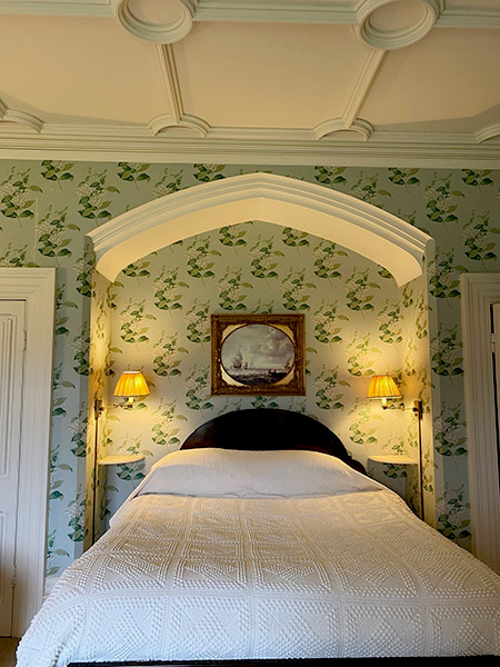 Apart from the silk and leather found in the State rooms, the rest of the Castle offers various wallpapers reflecting, with more accuracy, the actual word. Over the last twenty years or so, Geordie and I have redecorated many bedrooms which were left as something of a blank canvas after World War Two. This was because there were really only two main paint colours available at that time: a shiny cream and a shiny green. Thus many of the corridors, bedrooms and bathrooms just alternated combinations of one of these two colours. Pat Withers, who has decorated here for over 60 years used to be told which bedroom needed to be painted next rather than worry about colour choices.